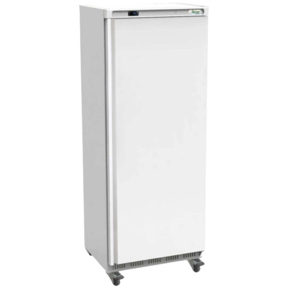 Festett acél burkolatú ipari hűtőszekrény, 700 literes űrtartalommal (nettó 641 liter), ventilációs hűtéssel.
