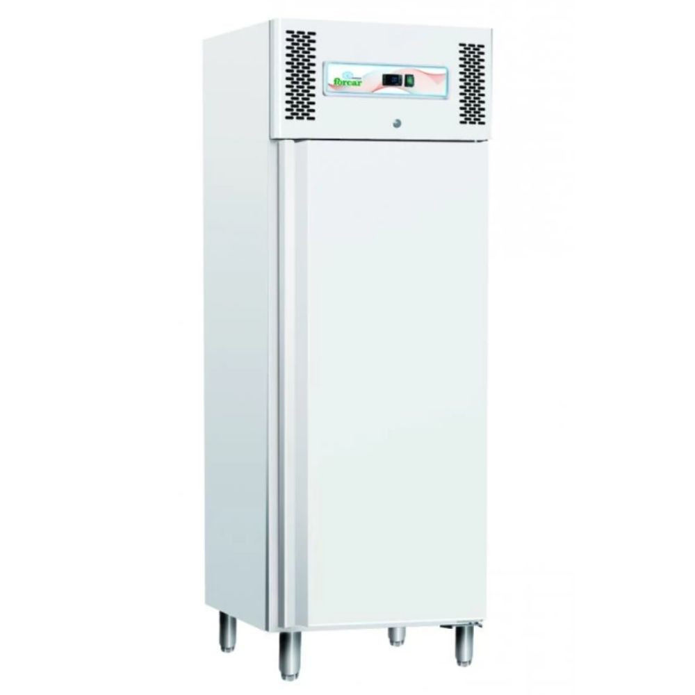Festett acél burkolatú ipari hűtőszekrény, 600 literes űrtartalommal (nettó 507 liter), statikus hűtéssel.