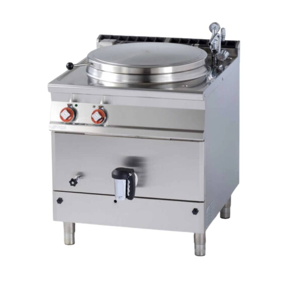 Olaszországban gyártott, főzősorba illeszthető elektromos főzőüst, 135 literes üsttel.