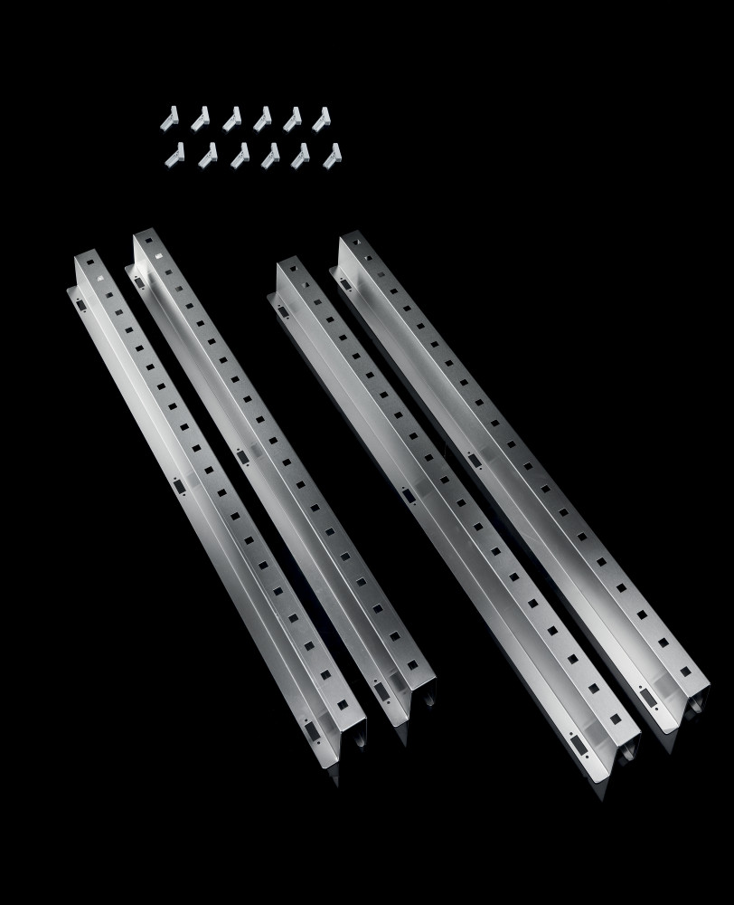 Az átalakítószett tartalmaz 4 db síntartóállványt 30 db polchellyel, valamint 12 db műanyag rögzítőfület.
